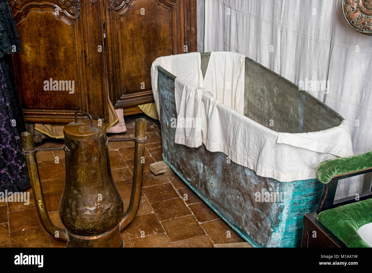 Bad Aus Dem 17 Jahrhundert In Frankreich Mit Einer Badewanne Und Einem Kupfer Wasser Heizung Stockfotografie Alamy