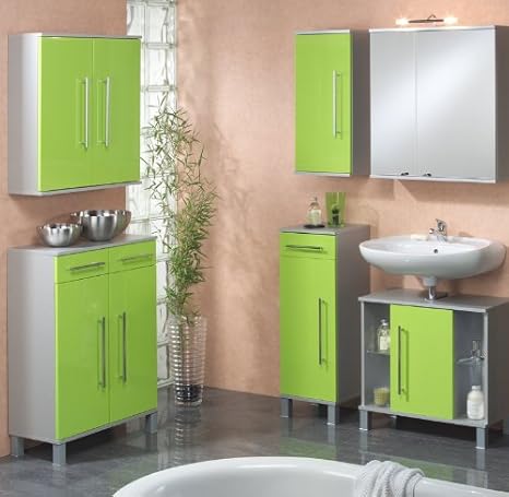 Komplett Badezimmer Set Hochglanz Grun Alufarben Spiegelschrank Badmobel Amazon De Kuche Haushalt