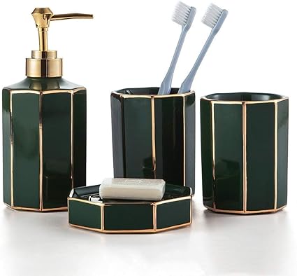 No Branded Bad Badezimmer Set Mit Seifenspender Zahnburstenhalter Tumbler Seifenschale Elegante Grun Gold Jfycuican Amazon De Kuche Haushalt